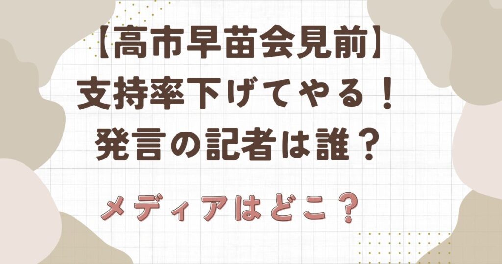 【高市早苗会見前】支持率下げてやる発言の記者は誰?メディアはどこ?