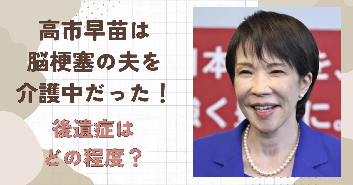 高市氏の夫である山本拓氏は、2025年に脳梗塞を患い、現在も介護が必要な状態とされています。